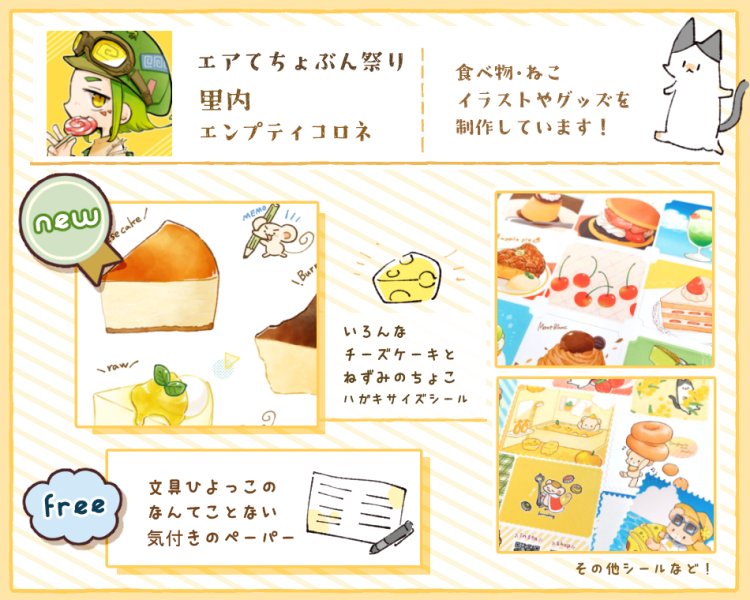 出展内容 創作イラストやグッズ 食べ物・ねこのイラストや、シールなどのグッズを制作しています! 詳細はこちら(lit.link) Xのアカウントはこちら Tweets by satouchiryo 投稿ナビゲーション ゆるソロ文具会|めむも。さん 液晶本舗 | 液晶本舗さん