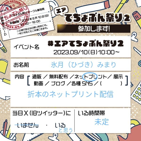 出展内容 手帳系の折本のネットプリントを事前配信の予定です 「てちょう占い」のこと 「おくすり手帳」のこと 「コッピャ」のこと ※ネットプリントの番号などの詳細は氷月みまりさんのX(ツイッターのアカウント)をご確認ください。 Xのアカウントはこちら Xのアカウントはこちら Tweets by risemimari 投稿ナビゲーション La*classe|水明さん ちほみ館 | ちほみさん